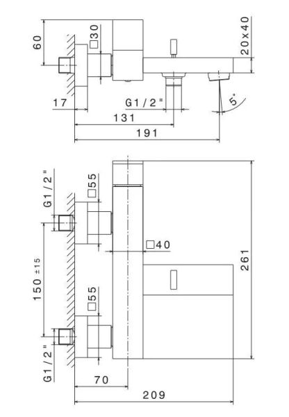 66440KM.01.093 Смеситель для ванны FUTURA настенный дивертором ванна/душ, без лейки, матовый черный