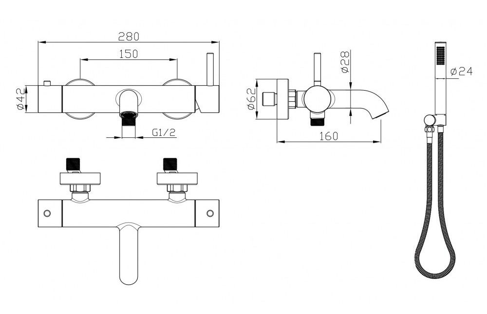 Смеситель для ванны с душем Milacio MCU MCU.350.SS нержавеющая сталь