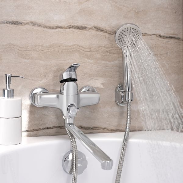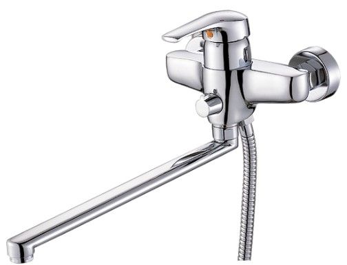 Классический настенный смеситель для ванны с длинным поворотным изливом функциональное и стильное решение для ванной комнаты.