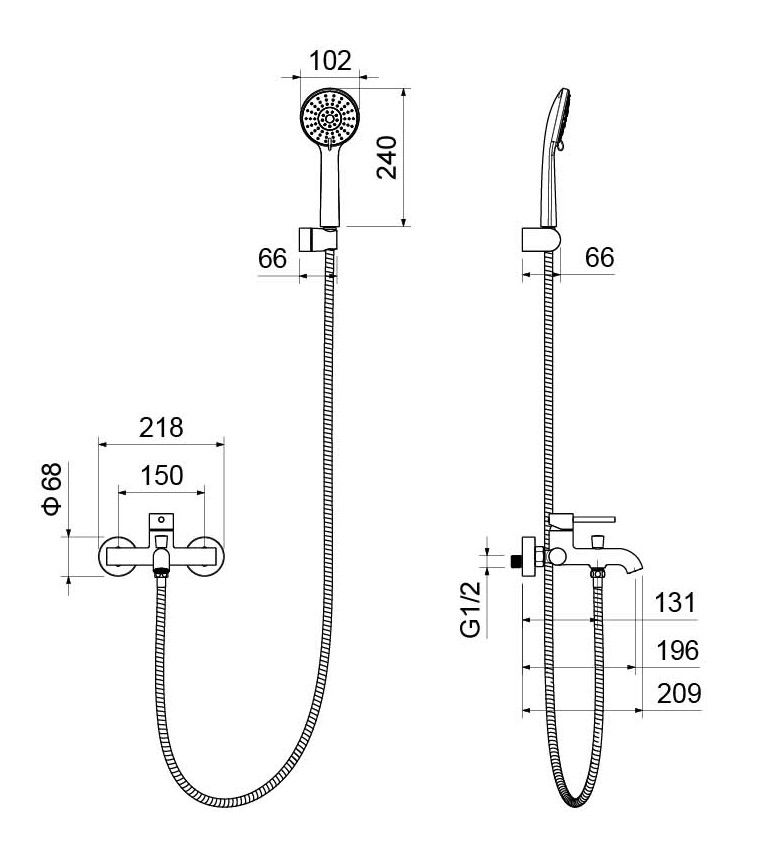 • Душевой гарнитур (лейка, шланг, настенный держатель для лейки)