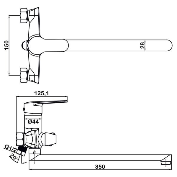 Смеситель для ванны Z-образный излив 350 мм, бесшовная технология произвоства.Керамический картридж Sedal.Керамический дивертор с фиксациейАэратор Neoperl.Эксцентрики и декоративные накладки. Гигиенически стабильная латунь с высоким содержанием меди.