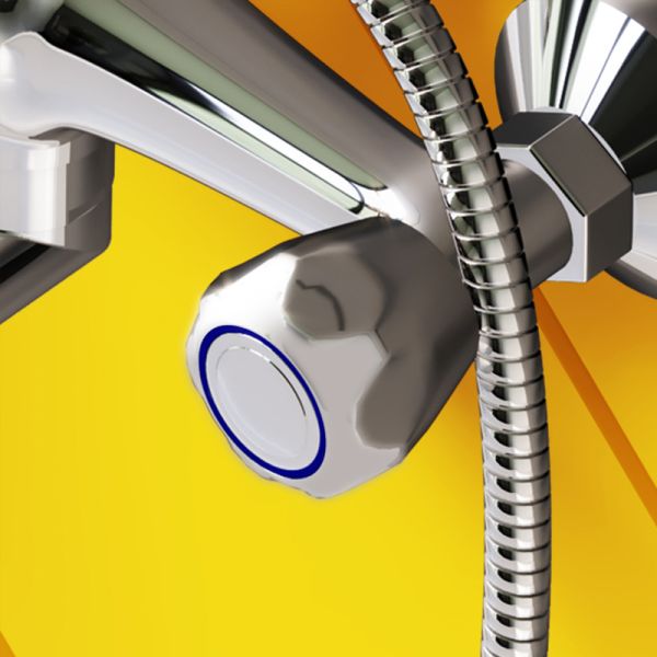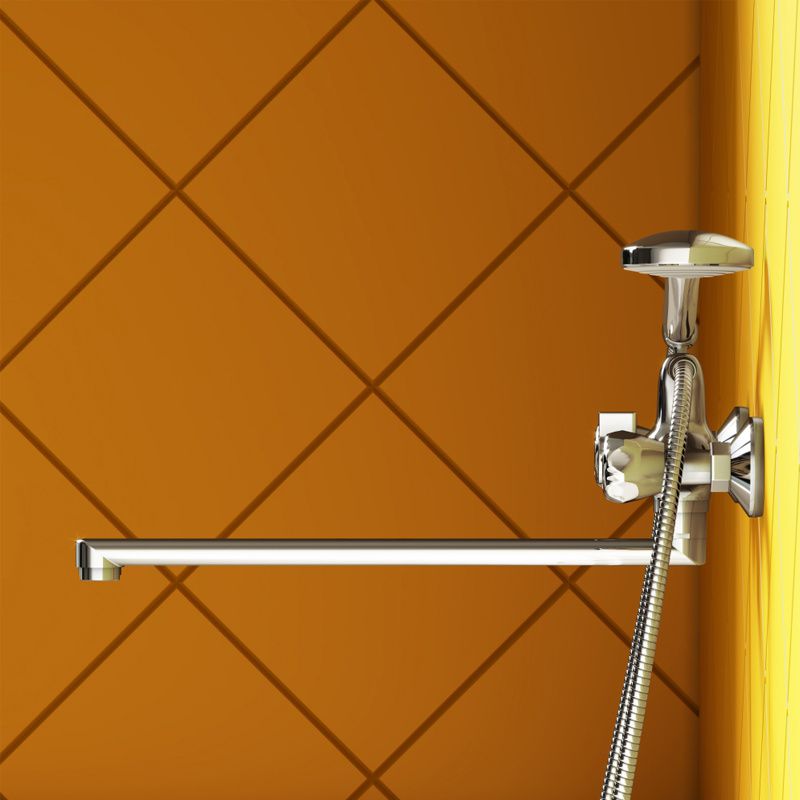 Смеситель для ванны и душа: излив поворотный, керамический картридж, в комплекте эксцентрики и декоративные розетки, выход 1/2 для душевого шланга, шланг 1500 мм, лейка Ø 95 мм (1 режим).