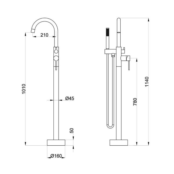 Однорычажный смеситель для ванной комнаты Orange Steel M99-336cr предусматривает напольное крепление. Такая модель будет особенно актуальна в новостройках, где часто вывод воды предусмотрен именно из пола. Смеситель выполнен в минималистичном стиле и имеет простой изогнутый излив крана, боковой однозахватный рычаг управления, шланг 150 см с защитой от перекручивания (в металлической оплетке) и ручной душ (1 режим). Основа конструкции выполнена из латунного сплава - отлично зарекомендовавшего себя материала; за переключение потоков воды отвечает керамический дивертор.