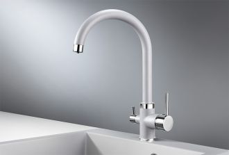 Смеситель для кухонной мойкиЦветовая гамма: Алюминиум, Классик, Антик, Песок, Пирит, Базальт, Арктик, Эспрессо, Графит, Черный, ШварцГибкая подводка (3 шт.); набор для крепления; прокладки уплотнительные (2 шт.); аэраторГарантийный срок от производителя - 5 лет