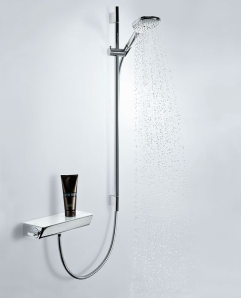Смеситель Hansgrohe Ecostat Select 13161000 для душа с термостатомХарактеристики продукта:-1 потребитель-предохранительный ограничитель при 40°C-из безопасного стекла-поверхность полочки: хром или белый-кнопка Ecostop ограничивает расход воды до 10 л/мин
