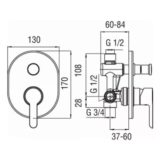 Смеситель Nobili AB87100CR для душа встраиваемый
