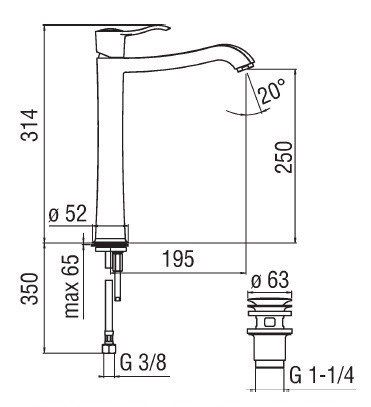 - Высота излива:250