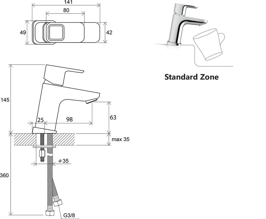 - соединительные шланги: гибкий 400 мм, диаметр G3/8