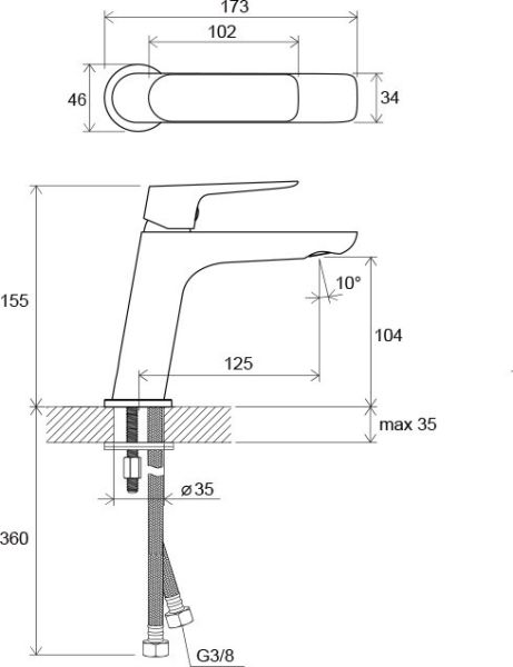 - соединительные шланги: гибкий 450 мм, диаметр G3/8