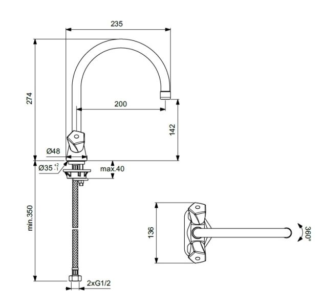 Высота смесителя:27.4