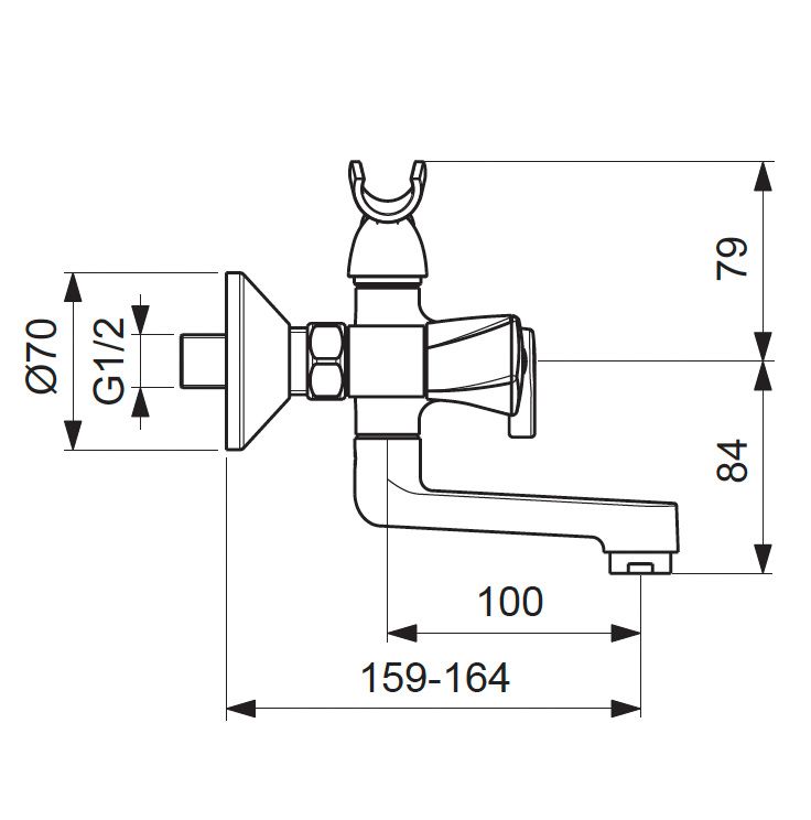 LIFE Смеситель для ванны/душа, поворотный излив 320 мм, душевой гарнитур в комплекте (душевая лейка Ø70 мм, металлический шланг 1500 мм, держатель для лейки).
