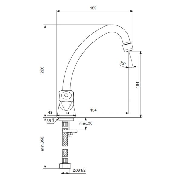 PRACTIC Смеситель для умывальника, поворотный излив.Смеситель двухрычажный