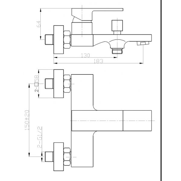 Смеситель для ванны однорычажный. С изливом * Материал: латунь