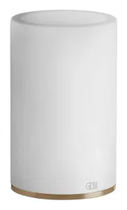 Белая верхняя часть из износостойкого полимера легко очищается и устойчива к влаге, а нижняя часть с матовой металлической отделкой придаёт изделию вес и устойчивость на поверхности. Оттенок тёплой бронзы создаёт мягкий акцент и гармонирует с элементами аналогичной отделки.