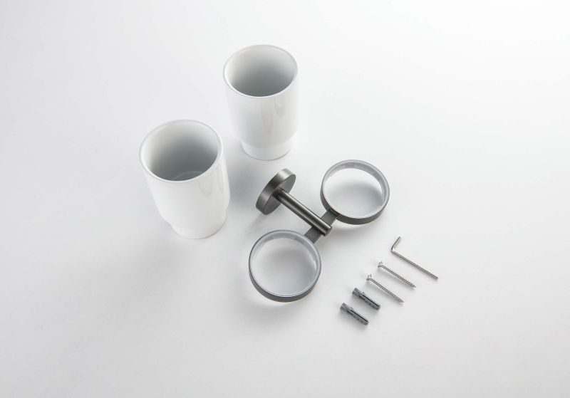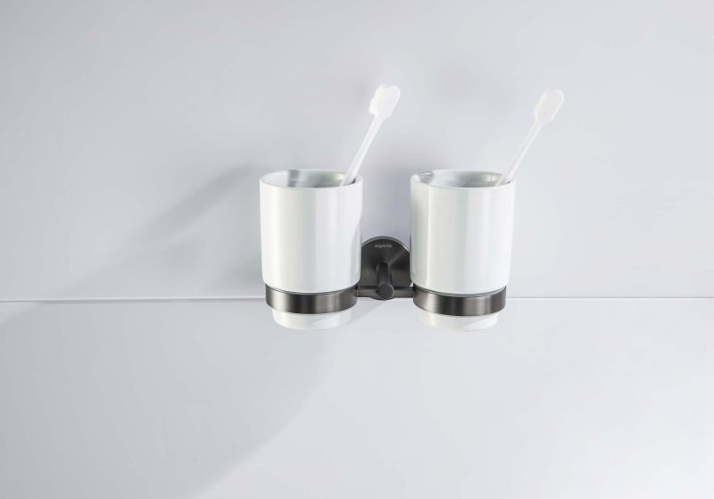 Стакан с держателем двойной Aquatek Бетта AQ4617BGM шлифованный чёрный хром