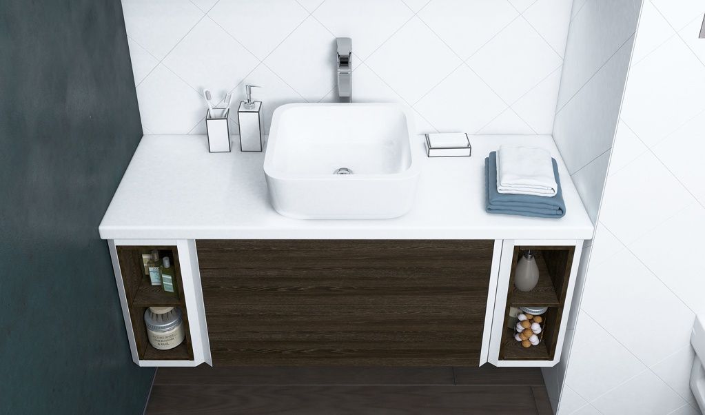 Столешница Акватон - БРУК 120 (20+80+20) 1A204905BC010 для одной раковины,изготовлена из МДФ толщиной 30 мм и также окрашена на линии УФ-отверждения. Высококачественный глянец белого Цвета прекрасно впишется в ванную комнату.