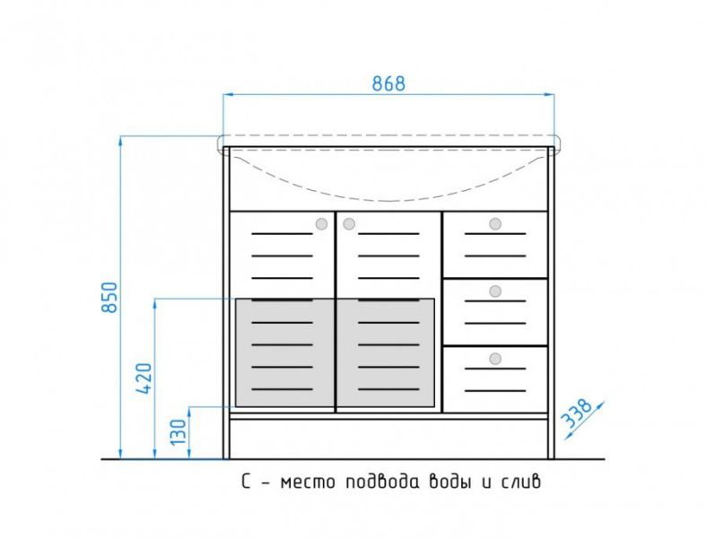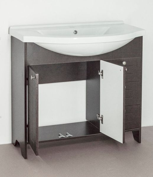 Тумба напольная бренда "Style Line" коллекции "Кантри" имеет оригинальные ручки "под бронзу", петли на дверцах с механизмом плавного закрывания, декоративную фрезеровку фасадов. Сборка изделия с помощью эксцентриковых стяжек Hafele; все материалы полностью влагостойкие. Данная тумба предусматривает открытую подводку воды