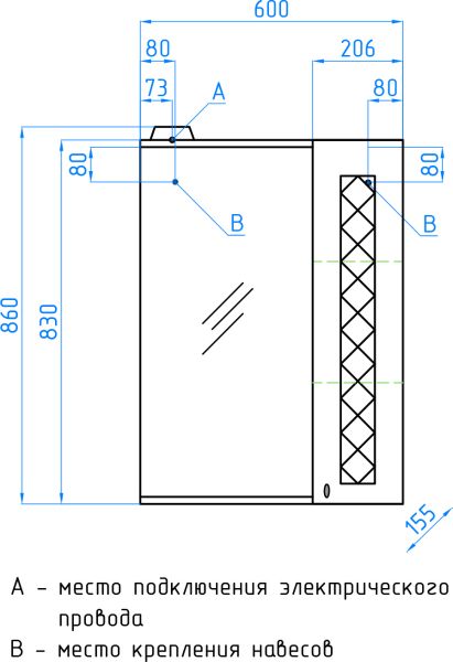Тип:зеркало-шкаф с подсветкой