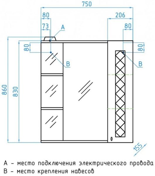 Тип:зеркало-шкаф с подсветкой