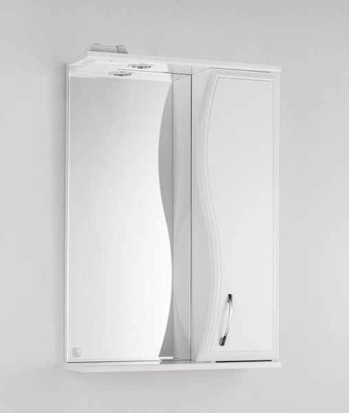 Зеркало-шкаф бренда "Style Line" коллекции "Панда 55/С Волна" с высокоточной обработкой кромки фацетом и подсветкой. Фурнитура - хром. Кромка зеркала "Панда 55/С Волна" зашлифована, что защищает от порезов. Лазерная гравировка фирменного логотипа. Край полочек имеет трапецевидную еврокромку. Эксклюзивный декор "Луино" - ламинация внутренней стороны изделия
