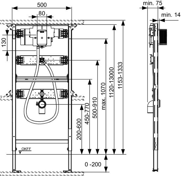 Tece Инсталляция U2 для писсуара, высота 1120 мм 9320013