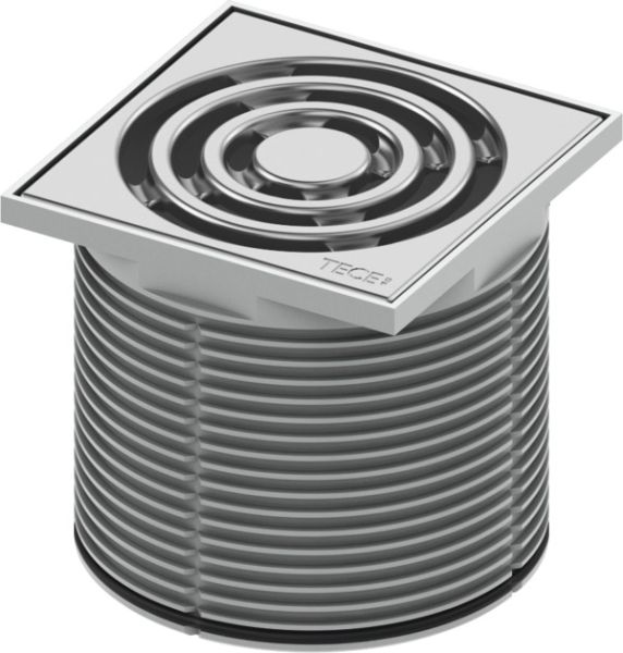 Декоративная решетка, нержавеющая сталь, 100 х 100 мм • Монтажный элемент • Решетка для волос • Стакан гидрозатвора с мембраной • Гидроизоляционная манжета Seal System, 480 х 480 мм • Сифон пластиковый (PP) низкий c горизонтальным поворотным отводом DN 50 и горизонтальным прямым входом DN 40 с заглушкой; -- пониженная высота гидрозатвора = 30 мм; -- производительность (согласно DIN EN 1253) при уровне воды над решеткой 10/20 мм: при минимальной высоте монтажа решетки – 0,52/0,61 л/с; при максимальной высоте монтажа решетки – 0,69/1,12 л/с. • Комплект опор со звукоизолирующими прокладками