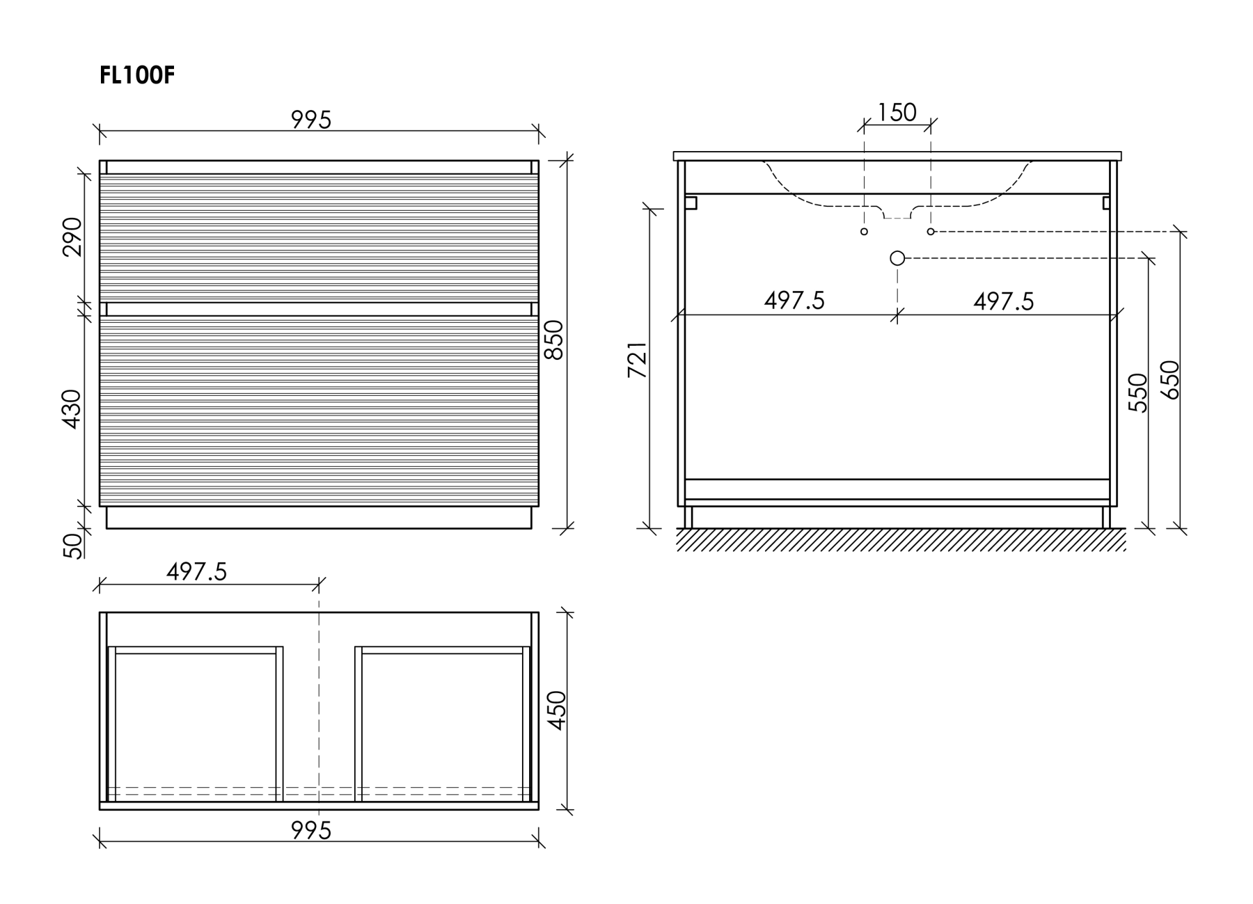 - Тумба напольная с двумя выдвижными ящиками с доводчиками скрытого монтажа