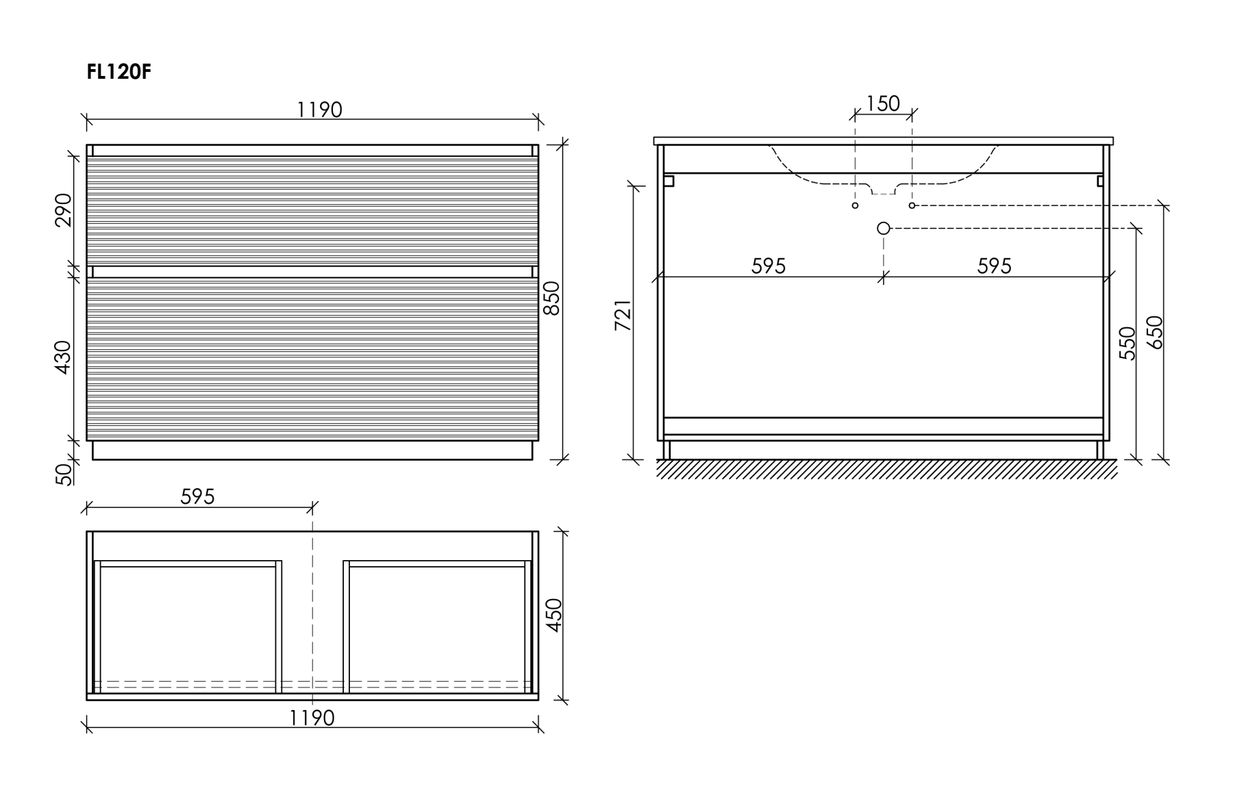 - Тумба напольная с двумя выдвижными ящиками с доводчиками скрытого монтажа
