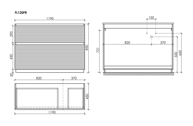 - Размер 1190х445х850, левая