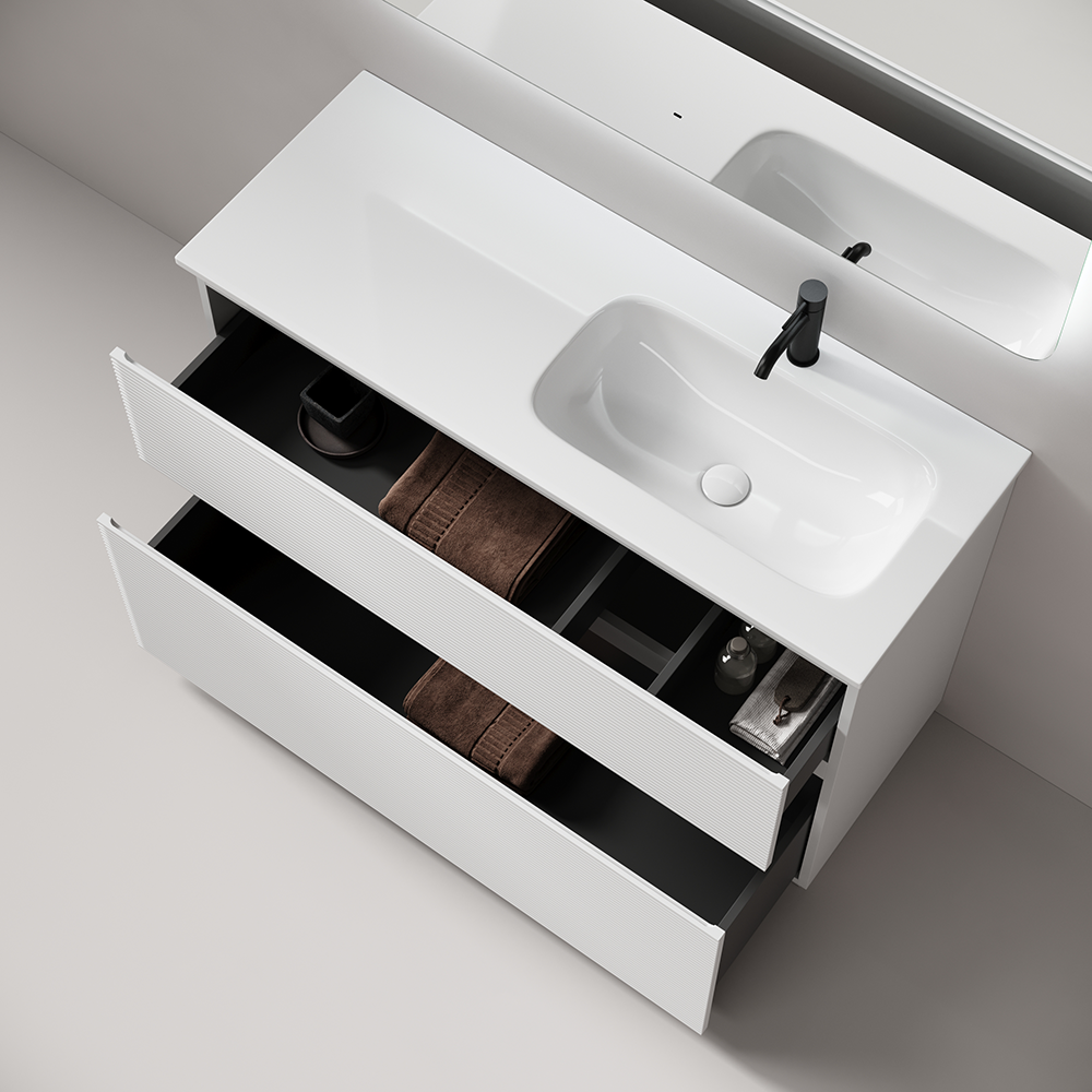 - Каркас и фасад тумбы выполнен из МДФ, покрытие ПВХ - пленка