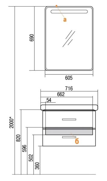 Стильная лаконичная модель, созданная для небольших ванных комнат. В тумбе имеются два ящика, изготовленные из декоративной влагостойкой ДСП. Верхний ящик имеет специальную организацию пространства, позволяющую хранить мелкие предметы, а нижний широкий и вместительный для более крупных предметов.