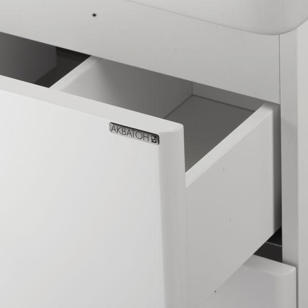 Реализовано нижнее подключение труб водоснабжения и канализации. Благодаря этому трубы можно вывести не только в стену (как это было организовано ранее), но и снизу. Теперь установка тумбы АМЕРИНА становится еще проще! Все коммуникации проходят за ящиком и дном тумбы и могут быть выведены в пол. Прежняя система подключения – для вывода труб из стены – так же осталась возможной.Тумба для комплекта Акватон Америна 70 белая отлично впишется в дизайн любой ванной комнаты, будь то компактная ванная в многоэтажном доме или большой санузел в загородном коттедже. Подвесной способ установки дает возможность не только визуально увеличить пространство, но и обеспечивает быстрый и удобный доступ для уборки.Компания Акватон использует при производстве высококачественные водоотталкивающие материалы (ДСП), соответствующие всем необходимым требованиям безопасности. Коллекция Америна выполнена в эксклюзивном дизайнерском решении в лучших традициях современного стиля. Белый, основной цвет исполнения Акватон Америна, отлично подходящий большинству дизайнерских решений. Тумба под раковину предусматривает удобную и вместительную систему хранения, состоящую из ящиков. Качественные доводчики позволяют обеспечить мягкое и тихое закрывание. Важные размеры товара: ширина 67 см, глубина 43.9 см, высота 46 см.Россия родина бренда Акватон, вся продукция производится со строгим соблюдением всех стандартов, благодаря чему можно быть абсолютно уверенным в надежности и высоком качестве. Тумба для комплекта Акватон Америна 70 белая создаст уют и комфорт в любом дизайнерском решении, и ванная комната обретет неповторимый элемент интерьера.