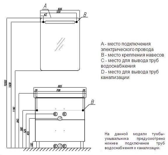 - Дополнительно организовано нижнее подключение труб водоснабжения и канализации
