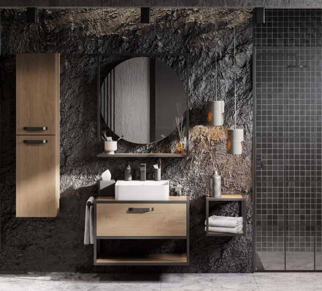 - Тумба Лофт Фабрик 80 в цвете дуб кантри – это сочетание насыщенного древесного декора и благородства металла