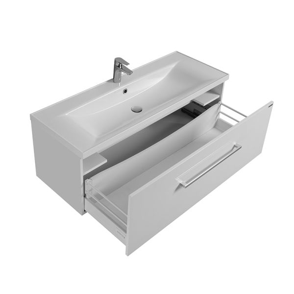 Тумба для комплекта Акватон Мадрид 120 М превосходно впишется в дизайн любой ванной комнаты, будь то компактная ванная в многоэтажном доме или большой санузел в загородном коттедже. Подвесной способ установки дает возможность не только визуально увеличить пространство, но и обеспечивает быстрый и удобный доступ для уборки.Компания Акватон использует при производстве высококачественные водоотталкивающие материалы (ДСП), соответствующие всем необходимым требованиям безопасности. Серия Мадрид отличается превосходным дизайном с соблюдением всех ключевых элементов современного стиля. Основным цветом, в котором выполнена тумба под раковину Акватон Мадрид является белый, отлично подходящий большинству дизайнерских решений. Тумба под раковину предусматривает удобную и вместительную систему хранения, состоящую из ящиков. Ключевые габариты изделия: ширина 120 см, глубина 44.1 см, высота 40 см.Страной бренда Акватон является, все товары производятся с выполнением соответствующих стандартов качества, что позволяет быть полностью уверенными в долговечности и надежности. Тумба для комплекта Акватон Мадрид 120 М правильный выбор в современном дизайне ванной, придающий уникальность всему помещению, при этом сохраняя функциональность.