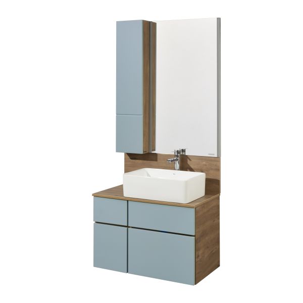 Тумба для комплекта Акватон Мишель 80 дуб рустикальный/фьорд несравненно подойдет как для просторной ванной комнаты, так и для небольшого помещения. Подвесной способ установки дает возможность не только визуально увеличить пространство, но и обеспечивает быстрый и удобный доступ для уборки.В производстве используют только качественные влагостойкие материалы (ДСП), в составе которых полностью отсутствуют опасные вещества. Серия Мишель отличается превосходным дизайном с соблюдением всех важных элементов современного стиля. Основным цветом, в котором выполнена тумба под раковину Акватон Мишель является голубой, гармонирующий с большинством интерьерных решений. Тумба под раковину предусматривает удобную и вместительную систему хранения, состоящую из ящиков с системой нажимного открывания. Качественные доводчики позволяют обеспечить мягкое и тихое закрывание. Важные размеры товара: ширина 80 см, глубина 46 см, высота 52 см.Страной бренда Акватон является Россия, все товары производятся с выполнением соответствующих стандартов качества, что позволяет быть полностью уверенными в долговечности и надежности. Тумба для комплекта Акватон Мишель 80 дуб рустикальный/фьорд это абсолютный комфорт в современной ванной комнате.