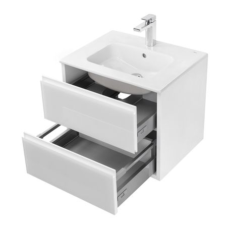 - Оба металлических ящика в тумбе снабжены направляющими полного выдвижения с системой демпфирования - мягкого закрывания австрийского производителя GRASS
