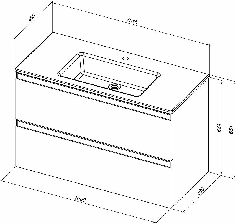 Габариты корпуса тумбы (ШхВхГ): 1000х634х460 мм.