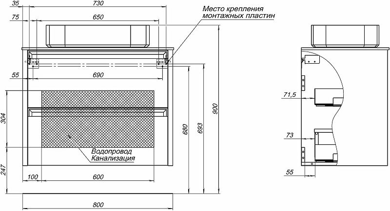 В комплекте поставки:Тумба под раковину.