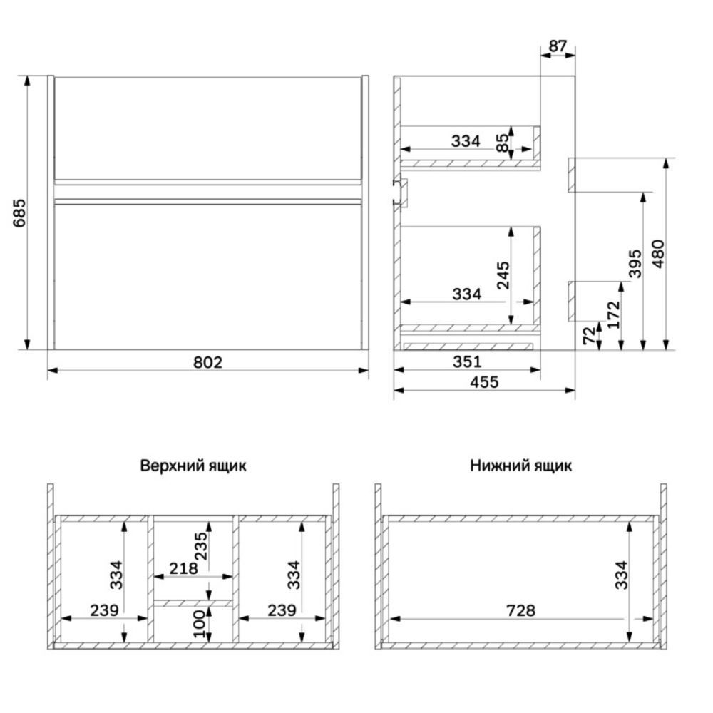 Два вместительных ящика на направляющих Soft-close скрытого монтажа, которые обеспечивают плавное и бесшумное открывание и закрывание - использование тумбы максимально комфортное.
