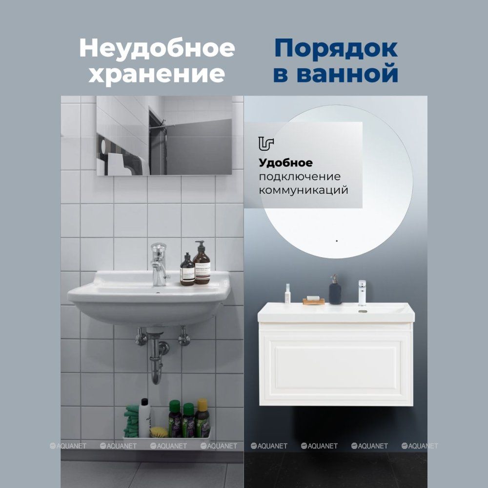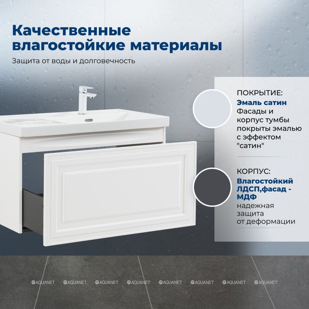 Тумба под раковину Aquanet Агата 90 белый сатин — это стильное и функциональное решение для ванной комнаты. Она сочетает в себе прочность, устойчивость к влаге и продуманную конструкцию.