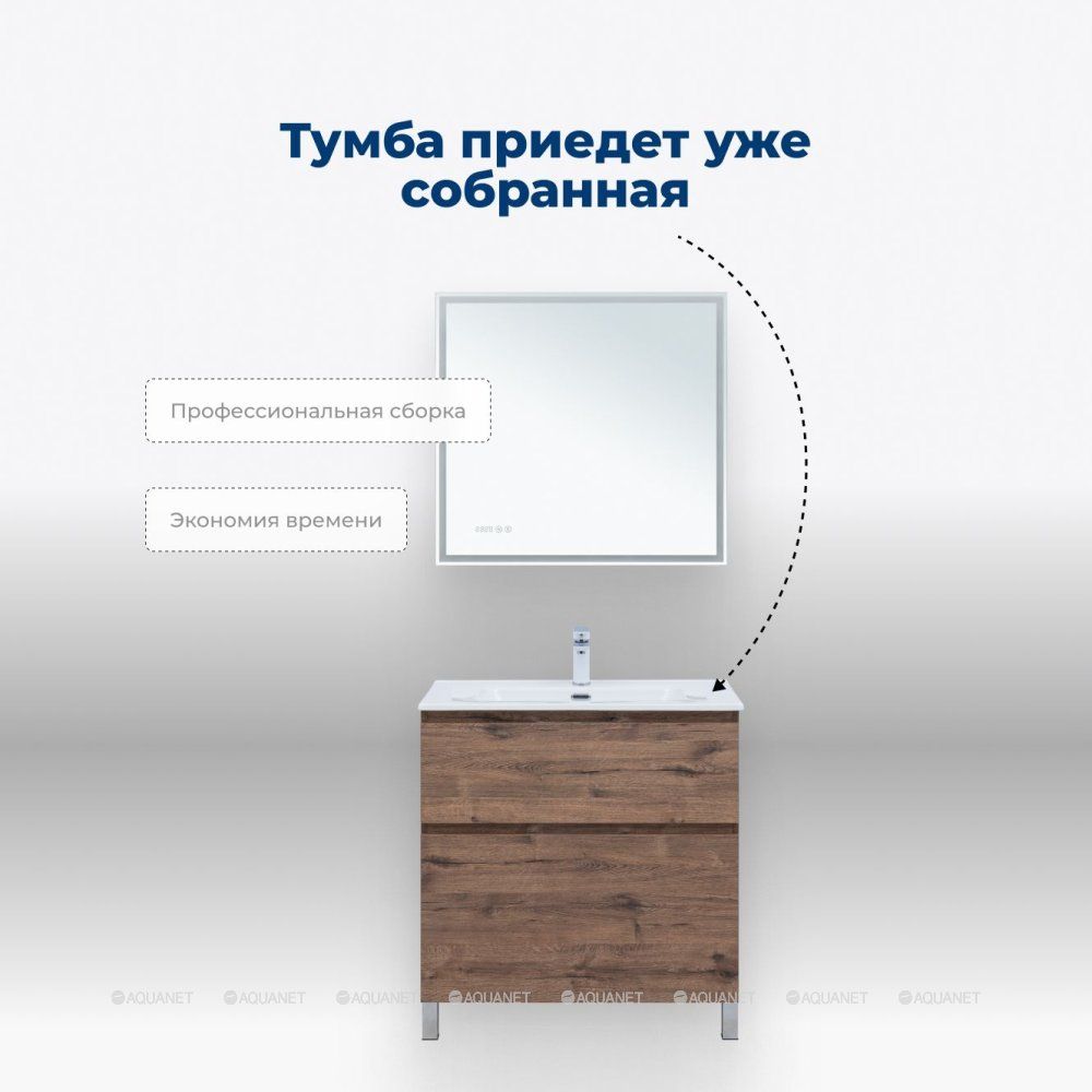 В тумбах за нижним ящиком предусмотрено место для подводки коммуникаций снизу. Тумбы комплектуются керамическими раковинами Flat 50/60/70/80/100 (Aquanet) или Flash 50/60/70/80/100 (Aquanet), что позволяет подобрать оптимальное решение для любой ванной комнаты.
