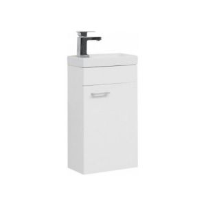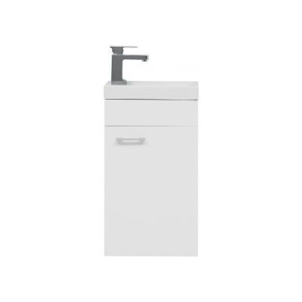 Тумба под раковину Aquanet «Нота» 40 R (Moduo) белого цвета — отличный вариант для небольших по площади ванных комнат или санузлов. Модель габаритами 391х217х650 мм не займет много места, позволит организовать пространство, разместив на полке средства для стирки или гигиенические принадлежности. Отсек закрывается одной дверцей, на которой располагается ручка для открывания.