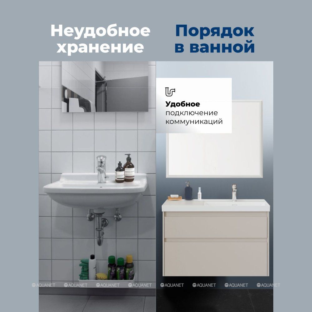 Вместительный нижний ящик – удобное хранение банных принадлежностей.
