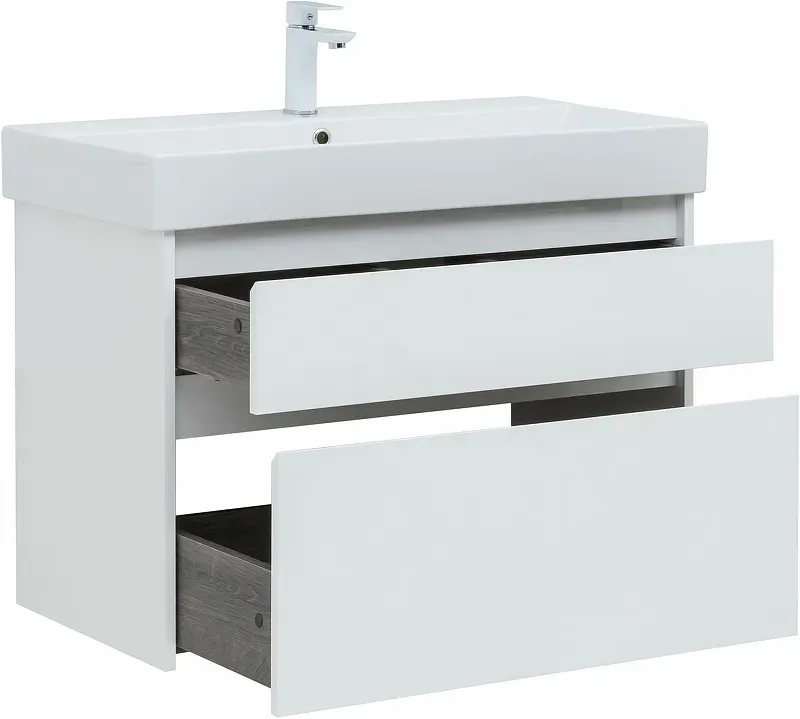 Тумба под раковину в ванную комнату бренда Aquanet выполнена в стиле модерн и входит в нашу коллекцию мебели Nova Lite. Представленная коллекция мебели для ванных комнат осчастливила сотни покупателей, так как они приобрели сочетание дизайна, качества и функциональности. Важный момент при выборе тумбы для умывальника / раковины - это материалы. Они должны быть адаптированы к эксплуатации в условиях повышенной влажности. Влагостойкий ЛДСП - материал, из которого выполнен корпус изделия, фасад - из влагостойкого ЛДСП. При монтаже напольной/подвесной тумбы в первую очередь необходимо учесть ширину, которая равна 82 см. Тумба в цвете белый (белый глянец) освежит Вашу ванну и будет отлично сочетатся с сантехникой. Тумба в ванную также обеспечит вам экономию места, так как в ней предусмотрены вместительные ящики, оснащенные механизмом доводчика.