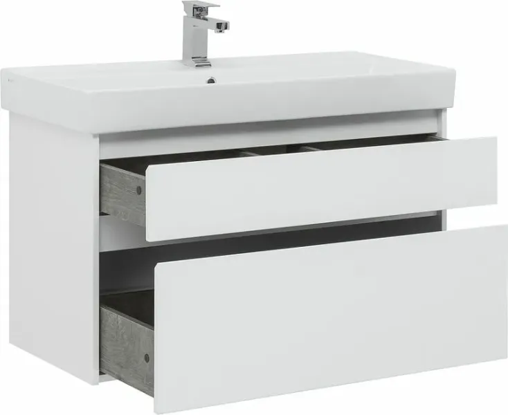 Тумба под раковину в ванную комнату бренда Aquanet выполнена в стиле модерн и входит в нашу коллекцию мебели Nova Lite. Представленная коллекция мебели для ванных комнат осчастливила сотни покупателей, так как они приобрели сочетание дизайна, качества и функциональности. Важный момент при выборе тумбы для умывальника / раковины - это материалы. Они должны быть адаптированы к эксплуатации в условиях повышенной влажности. Влагостойкий ЛДСП - материал, из которого выполнен корпус изделия, фасад - из влагостойкого ЛДСП. При монтаже напольной/подвесной тумбы в первую очередь необходимо учесть ширину, которая равна 95 см. Тумба в цвете белый (белый глянец) освежит Вашу ванну и будет отлично сочетатся с сантехникой. Тумба в ванную также обеспечит вам экономию места, так как в ней предусмотрены вместительные ящики, оснащенные механизмом доводчика.