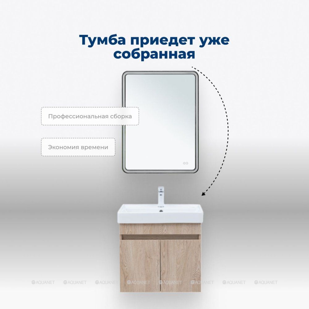 Тумба Aquanet Оптима 60 продумана до мелочей. В ней предусмотрено удобное место для подводки коммуникаций снизу, что облегчает установку и подключение сантехнического оборудования.