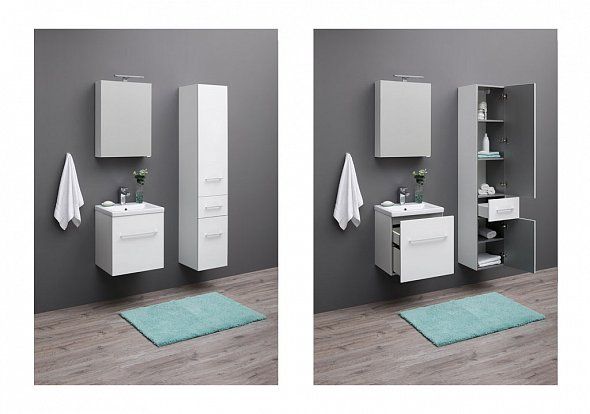 Тумба Aquanet Порто 60 белого цвета отличается стильностью и функциональностью. Внешний ее лаконизм скрывает в себе очень продуманный конструктивизм внутреннего устройства, где невысокий ящик с тремя отделениями скрывается за фасадом основного места хранения, поэтому разместить в этой небольшой на первый взгляд модели шириной 50 см можно много полезных в ванной комнате мелочей, а также найти место для высоких емкостей. Материал фасадов – крашенный белым глянцем влагостойкий МДФ. Для оборудования тумбы использованы петли и доводчики польской фирмы Gamet — одного из крупнейших производителей мебельной фурнитуры и комплектующих в Европе. В этом можно убедиться, оценив качество доводчиков, которые позволяют плавно отодвигать и задвигать ящики, а также убедившись в надежности ручек.