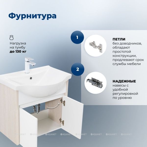 Тумба под раковину Aquanet Сидней 345123 65 см дуб атланта/белый