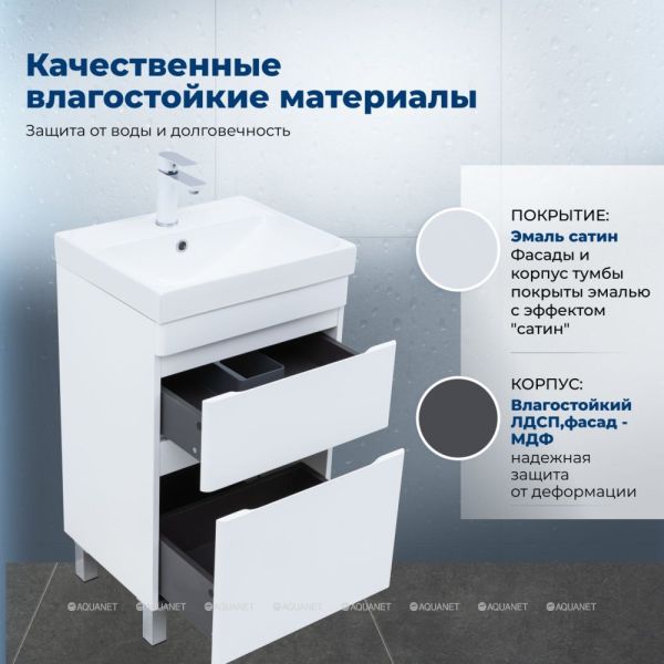 Тумба под раковину Aquanet Слим 346041 50 см белый сатин